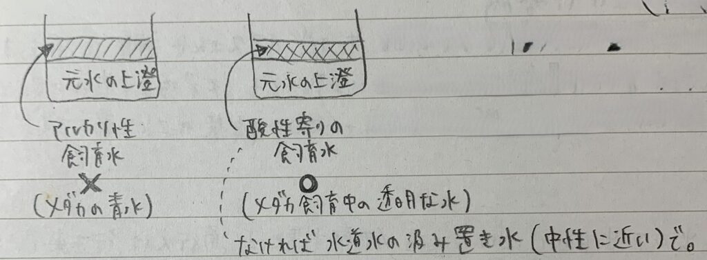 → 汚くて、酸性に結構傾いていると思われる飼育水。