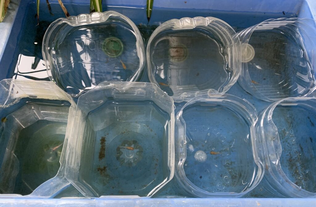 2リットルペットボトルを半分にして1匹ずつ飼っている私です。
