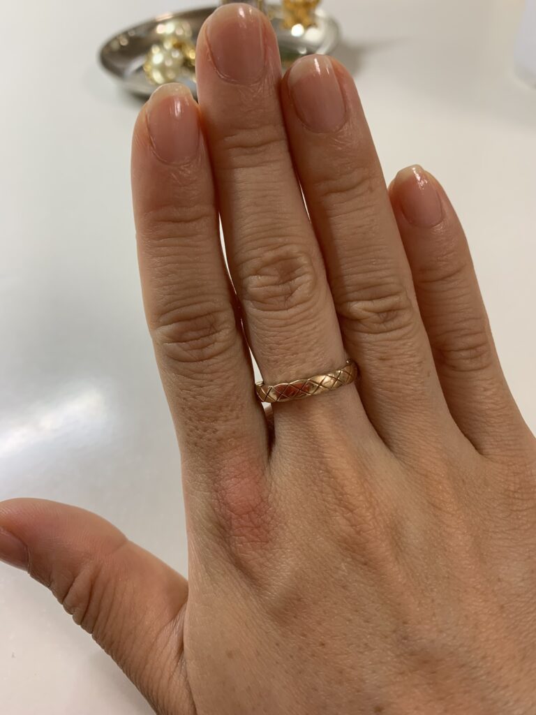 左中指でスルっと抜けることはないのですが、手を振るとリングが斜めになってみたり。