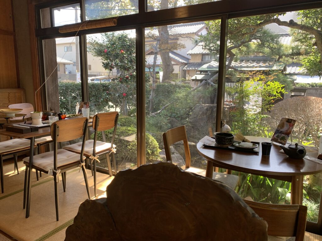窓際のお庭の見える、この2組席、最高ですね。(私は向かって右の席に座りました)