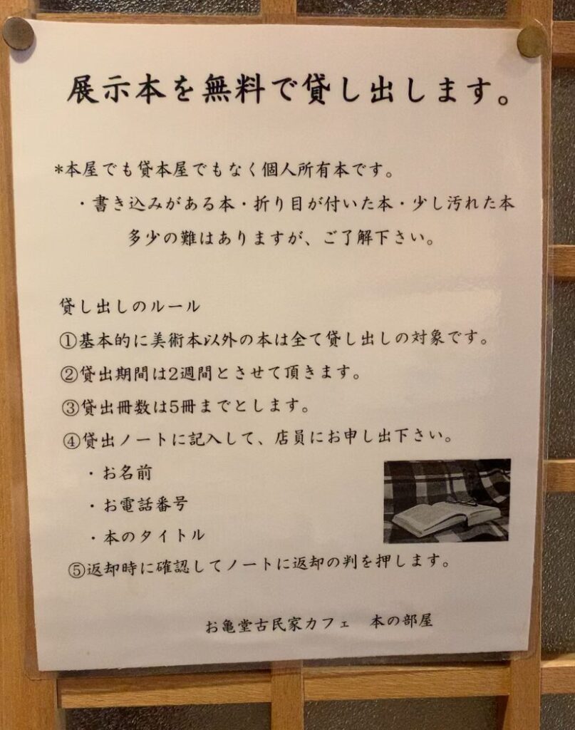 ところで、この古民家カフェさん、本の貸し出しもしているみたいで。