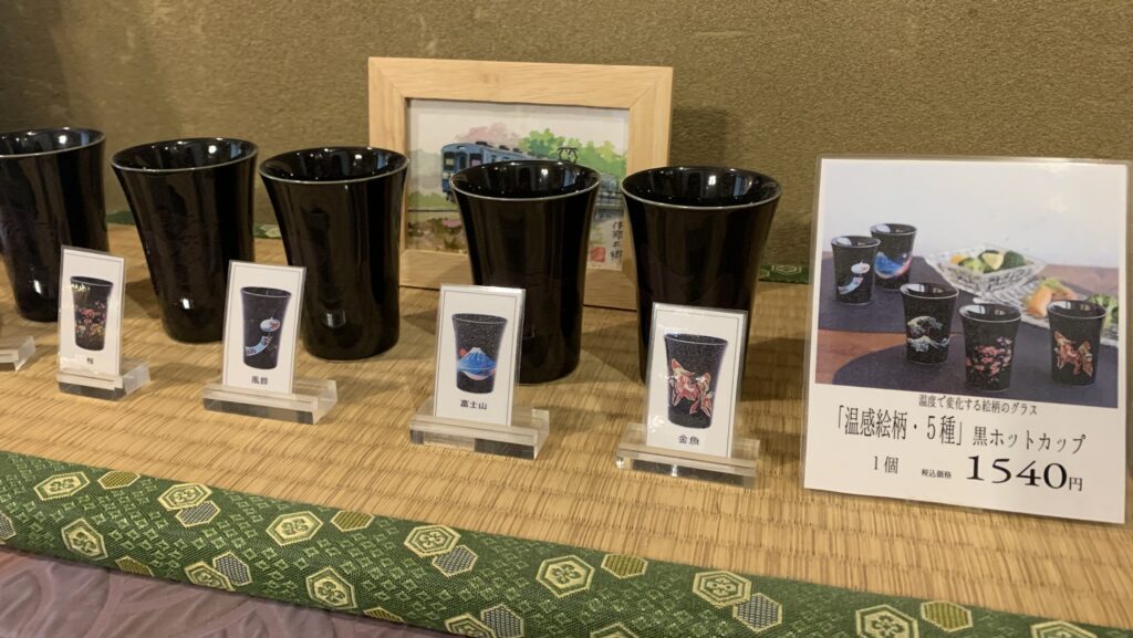 席につくと、お茶を出してくれるのですが、温感で湯のみ?コップに絵柄が浮き上がります。