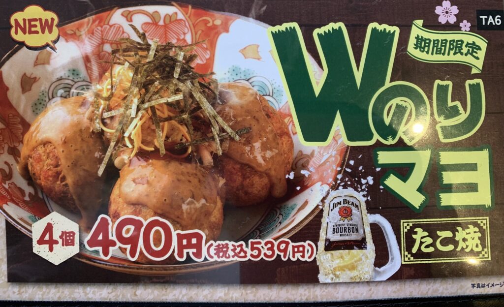 2人で行ったのですが、とりあえず、念願のたこ焼きを頼むことに。